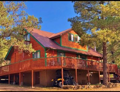 French doors open to wraparound decks with mountain and Ruidoso Valley views. The kitchen is ample with a pantry. Separate dining room. The first-floor main bedroom is expansive, with its own private patio door to a backyard area. Upstairs, you will find 2 more bedrooms and an office area.